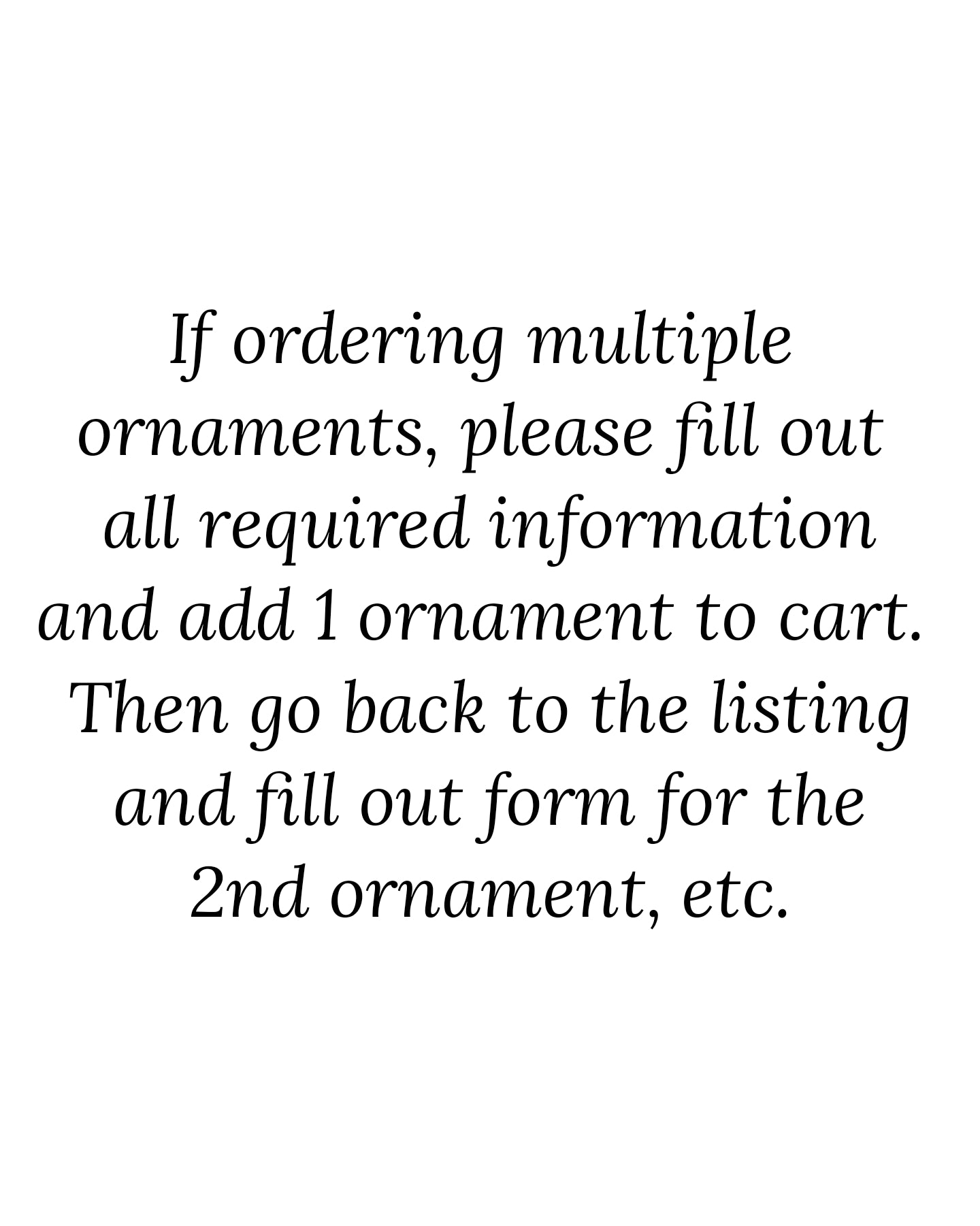 ***If ordering multiple ornaments, please fill out all required information and add 1 ornament to cart. Then go back to the listing and fill out form for the 2nd ornament and add to cart, etc.***